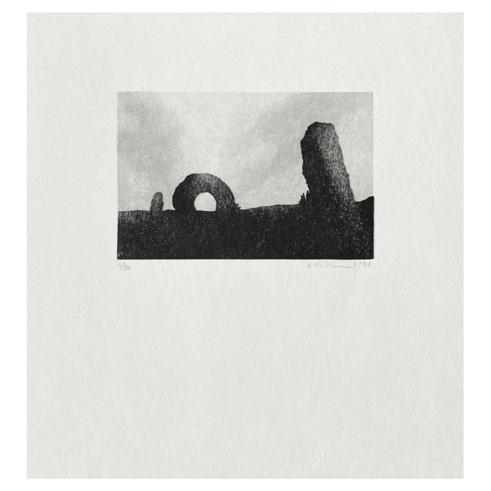 The sixth in an ongoing series of small prints focusing on dolmens, quoits and standing stones.