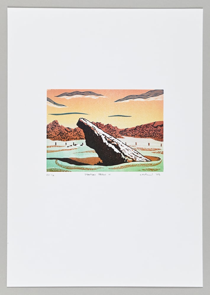 Reduction linocut and monoprint, printed on acid free smooth cartridge paper.